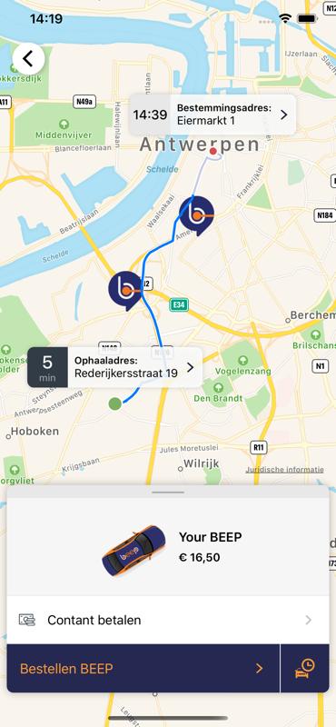 Order a taxi from Antwerp and surrounding municipalities to your location with only two mouse clicks! If necessary, enter your specific wishes and confirm your order. Your approaching taxi can be followed on the map. When you provide a destination address with the assignment, you can request a price indication. Reservations are possible.