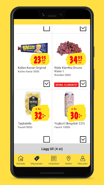 Here you can, among other things, make shopping lists, see our nicest offers and get information on upcoming deliveries.