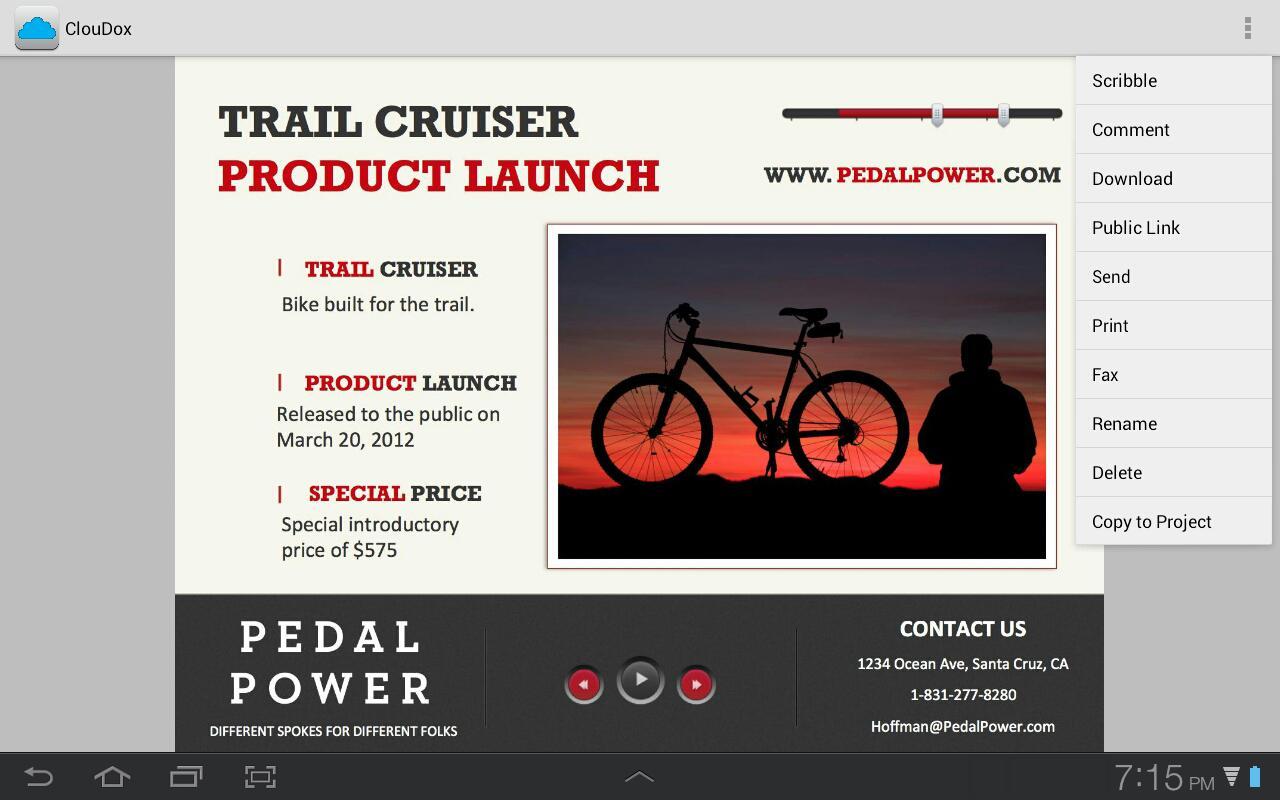With ClouDox for Android, you can access Favorited files when a connection is not available. And on your tablet, you can annotate them using our integrated Scribble tool so when the connection is available again, your files automatically sync with ease.