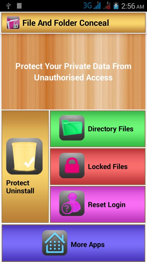 File And Folder Conceal is a powerful tool to protect your private data from unauthorized access. This app makes sure your privacy with advance security algorithm. There is a password protection you can hide your private videos, audios, gallery, photo, personal document and other files. When you want to view a locked file open application with a specific password that only you know, unhide file Now it is visible in your file explorer. Hide your sensitive data to prevent unauthorized access unhide when needed. You can protect apps unauthorized installation. There is also a mechanism to recover forgotten password. File And Folder Conceal is a free app and it is best of its nature.