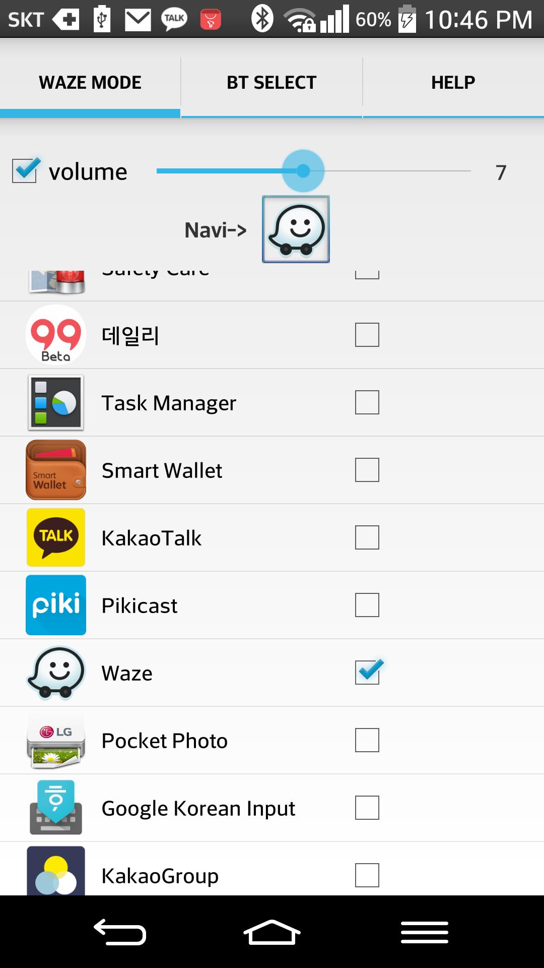 ① If you want the volume to be set at a particular level whenever your device has Bluetooth connection, tap on the volume checkbox to activate and set the volume level as you want.