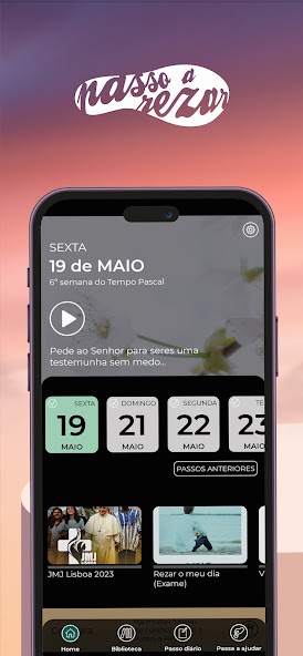 Passo-a-Rezar is a digital project where you can find, every day, a 10-minute prayer proposal, inspired by the readings of the day. You just have to let yourself be guided by the voice and the music and surrender everything to the Lord.