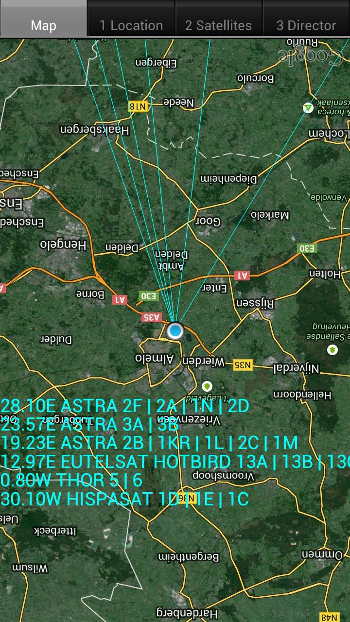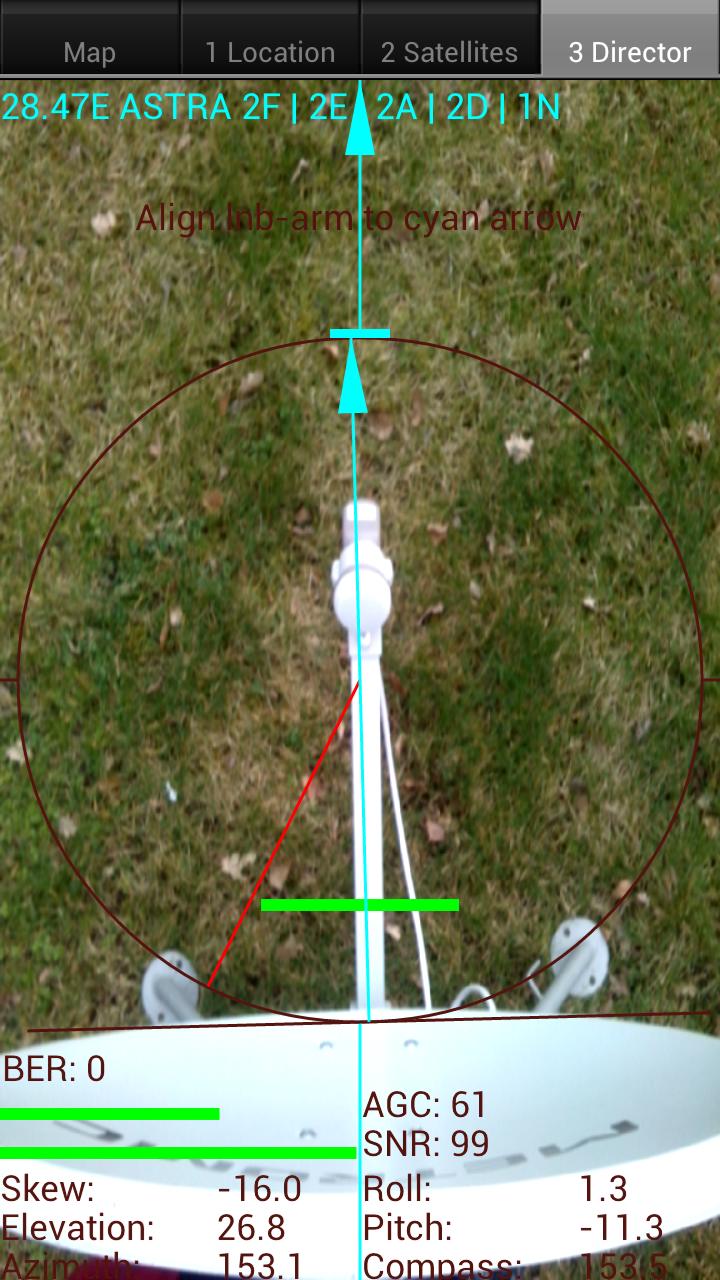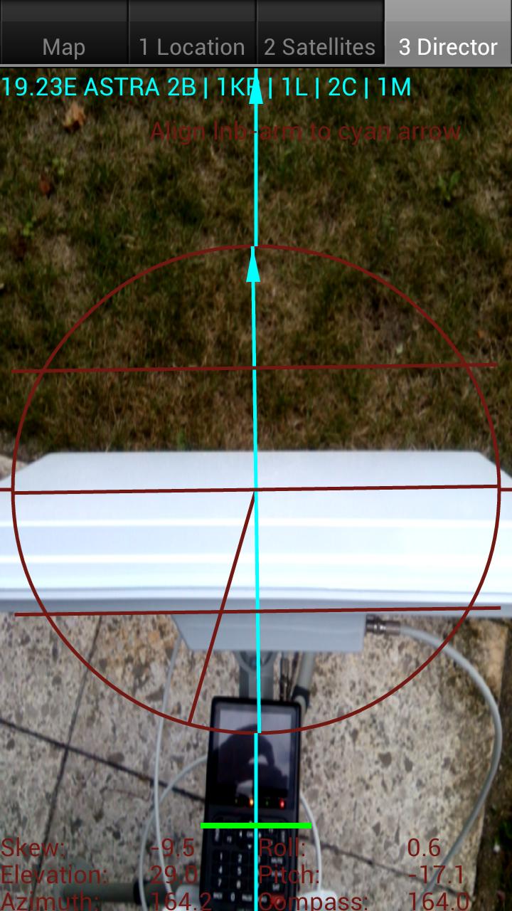 Finding a TV satellite, in azimuth, is difficult. Satellite Director helps.