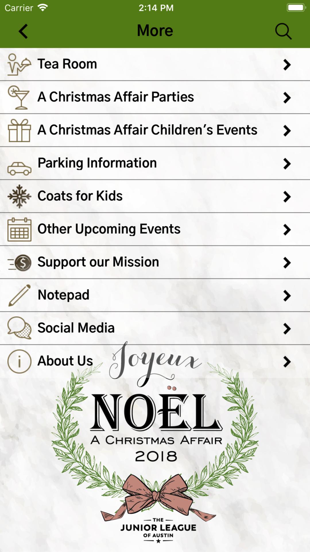 This app is for The Junior League of Austin's annual A Christmas Affair marketplace and event fundraiser. This app will link to tickets and events as well as a list of this years merchant vendors and map.