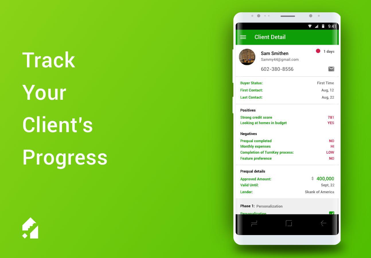 Are you a real estate agent looking for a better way to help your clients? Learn the true needs/wants of your clients through our proprietary "Customer Profile" so that you can best help them find the home of their dreams. Track their progress through the sales process using our Sales Map, and greatly increase the speed at which you move a home sale.