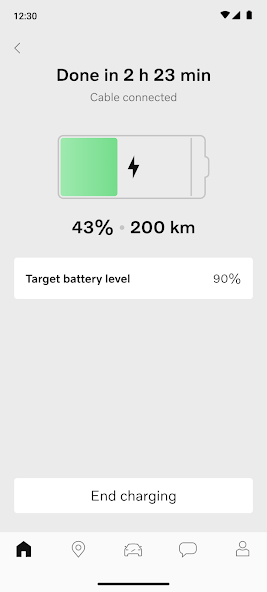 Check the charge level and when the battery will be charged, plus charging history. With the Extended Range battery, you can also set charge limit.