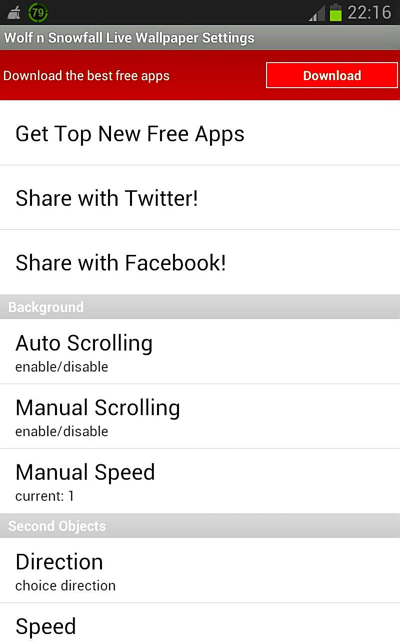 Then add the application Wolf n Snowfall Live Wallpaper in memory of the device. Will instal the program and