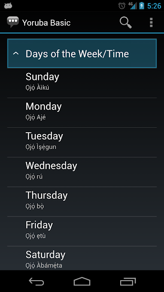 Using this app, you can select an English phrase and view its translation and how to pronounce it in Yoruba.