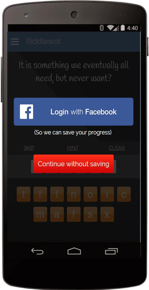تمت إضافة الألغاز الجديدة يوميًا ، لا تضيع وقتك مع التطبيقات الأخرى التي تتقاضى لك قائمة قصيرة من الألغاز ، Riddlewot مجانية ، لا إعلانات ، لا حيل متستر ، مجرد متعة جيدة الطراز ..
