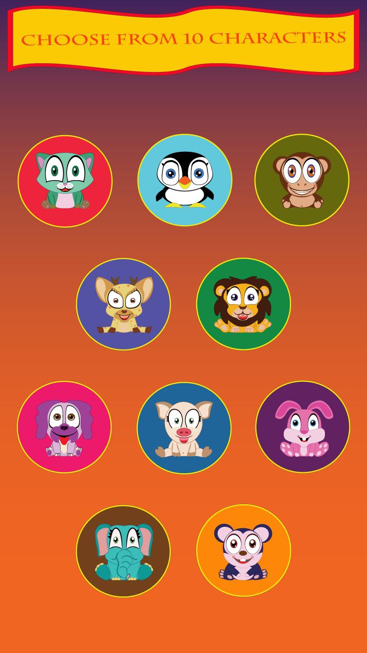 10 حيوانات لطيفة للتغذية - البطريق ، الأرنب ، كيتي ، القرد ، جرو ، الفيل ، الأسد ، الغزلان ، الخنزير والماوس.