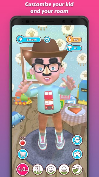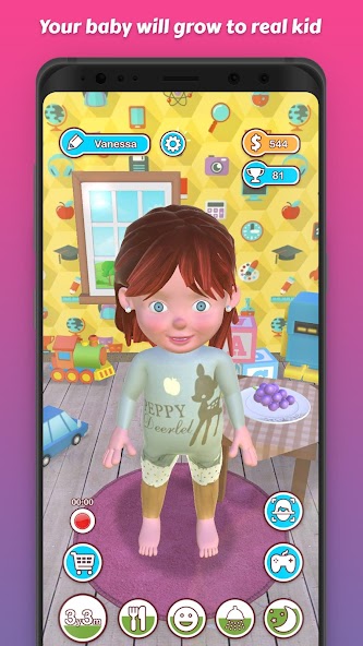 مع استمرار نمو طفلك ، ستقوم اللعبة بإلغاء قفل ميزات رائعة جديدة مثل كرة القدم وكرة السلة والعديد من الأشياء المضحكة الأخرى التي يمكنك القيام بها. ستمنحك لعبة الأطفال أيضًا الحرية الكاملة لتزويد غرفة الأطفال ، وستتمكن من تغيير الغرفة كما ترغب في ذلك. يمكنك تغيير ملابس الطفل واسم الطفل وجنسه ولون بشرته والعديد من الأشياء الأخرى.