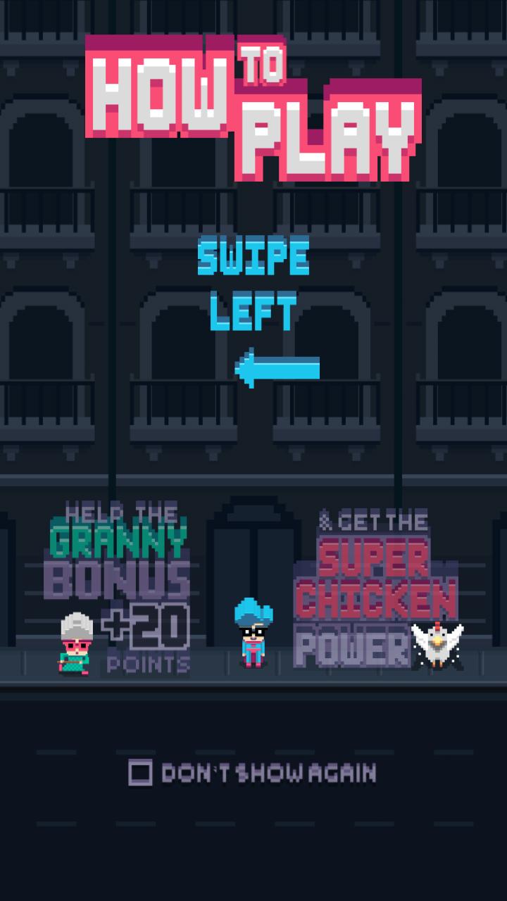استمتع بالكثير من المرح وأنت تحاول عبور الشارع بأمان. مساعدة الجدة الصليب والحصول على نقاط المكافأة. وبالطبع ، تأكد من حصولك على قوى الدجاج الفائقة!