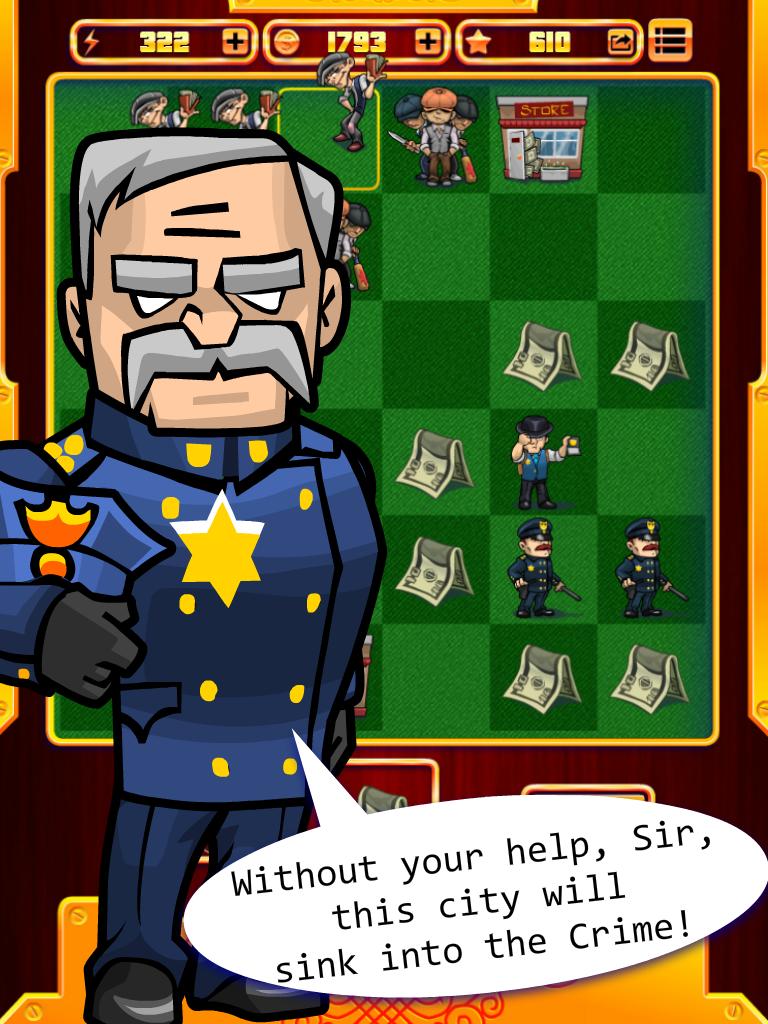 إنه اختيارك ، كيف ستتطور اللعبة. ساعد المافيا على الاستيلاء على هذه المدينة وهزيمة الشرطة أو أن تكون أول مدافع عن المدينة! أنت فقط تقرر كيفية اللعب! جمع مجموعة رائعة من الأشكال وكسب المزيد من نقاط النقاط والمال. فكر في كل خطوة ، لأن الخطوة الوحيدة التي لا يمكن التفكير فيها يمكن أن تدمر كل خططك! تتنافس مع لاعبين آخرين في جميع أنحاء العالم. شارك درجاتك على لوحة المتصدرين ، وتصبح الأولى!