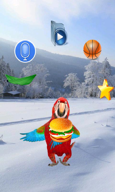 - Papagei spricht wird jedes Lied singen, zu dem Sie sie bitten. Wählen Sie einfach einen Musiktrack auf Ihrem Gerät aus und lassen Sie diesen lustigen Papagei die Magie machen.
