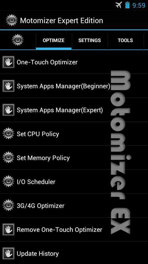 Motomizer ist ein Tool für einfache System- und Einstellungsoptimierung.