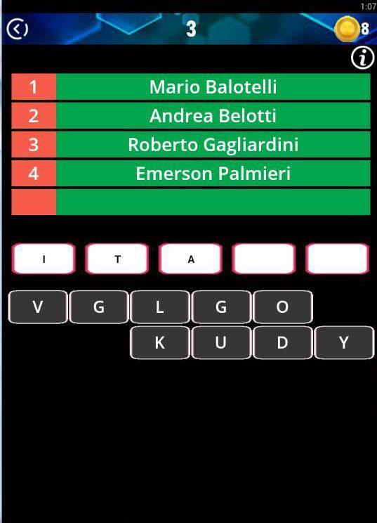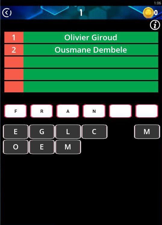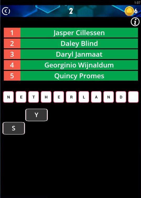 Jeder Wort Hinweis besteht aus 5 Fußballspielern, die Herausforderung Ihres Gehirns besteht darin, die Antwort ihres richtigen Landes mit den 5 Fußballspielern zu erhalten.
