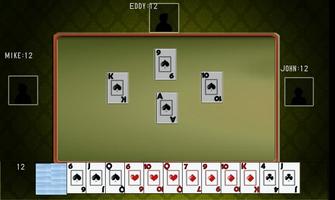 9) Wenn jemand nicht den gleichen Anzug spielen kann, spielt er eine Karte mit einem anderen Anzug, dann hat derjenige, der die höchste Karte des Anzugs gespielt hat, die geführt wurde, alle Karten, die für den Trick gespielt wurden, und sie ihrer Hand hinzugefügt.