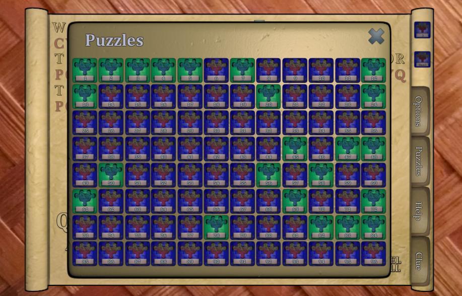 Zitate, Phrasen, Fakten, Trivia. Jedes Puzzle wird mit einem Hinweis geliefert, den Sie können