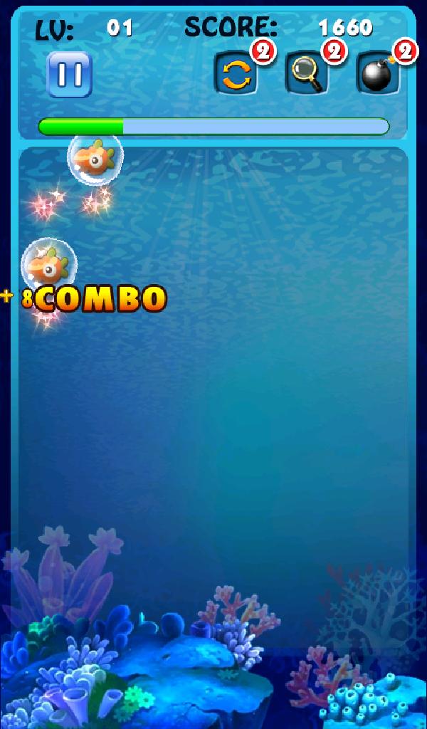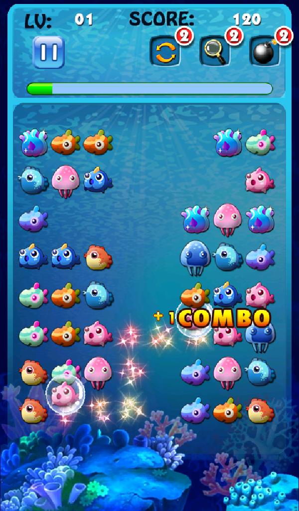 1. Schließen Sie zwei der gleichen Fische an, um die Fische zu bedecken und mehr Punktzahlen zu erhalten.