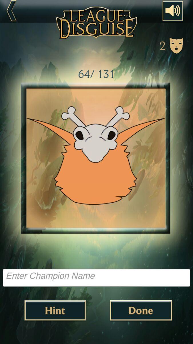 Ziel des Spiels ist es, alle Gesichter der Champions in einem einzigartigen Stil zu erraten. Das erste Bild ist das schwierigste, das nur ein kleines Stück des Gesichts des Champions zeigt. Wenn ein Championnähte zu schwierig zu erraten ist, drücken Sie einfach den Hinweisknopf. Sie erhalten weitere Details zu seinem/ihr/sein Gesicht.