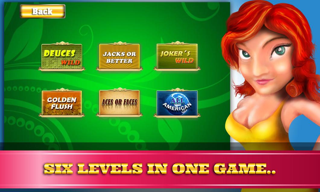 * 6 Video -Pokerspiele zur Auswahl: Jacks oder besser, Doppelbonus, Deuces Wild, Ten oder besser, Bonus Deluxe, Doppel -Doppel -Bonus, Joker Wild, Aces und Gesichter, Nevada -Bonus und Progressive.