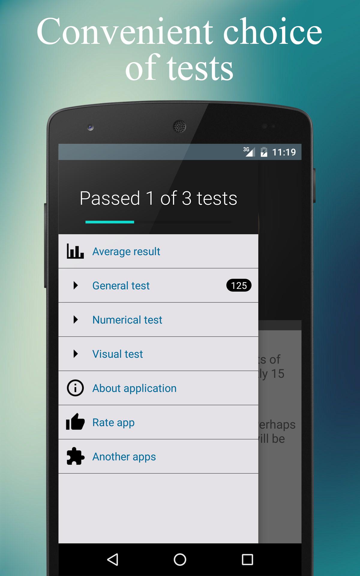 La aplicación también calcula su IQ promedio se basa en todas las pruebas aprobadas.