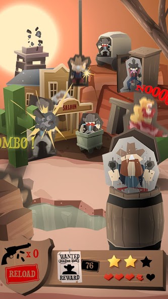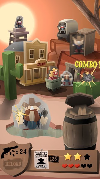 Domete tantos de estos renegados como puedas con tu potro a través de cien niveles que se están volviendo cada vez más difíciles. Muestre su destreza y rapidez con sus pistolas y guarde la ciudad antes de que se ponga el sol. ¡Bienvenido al lejano oeste, vaquero!