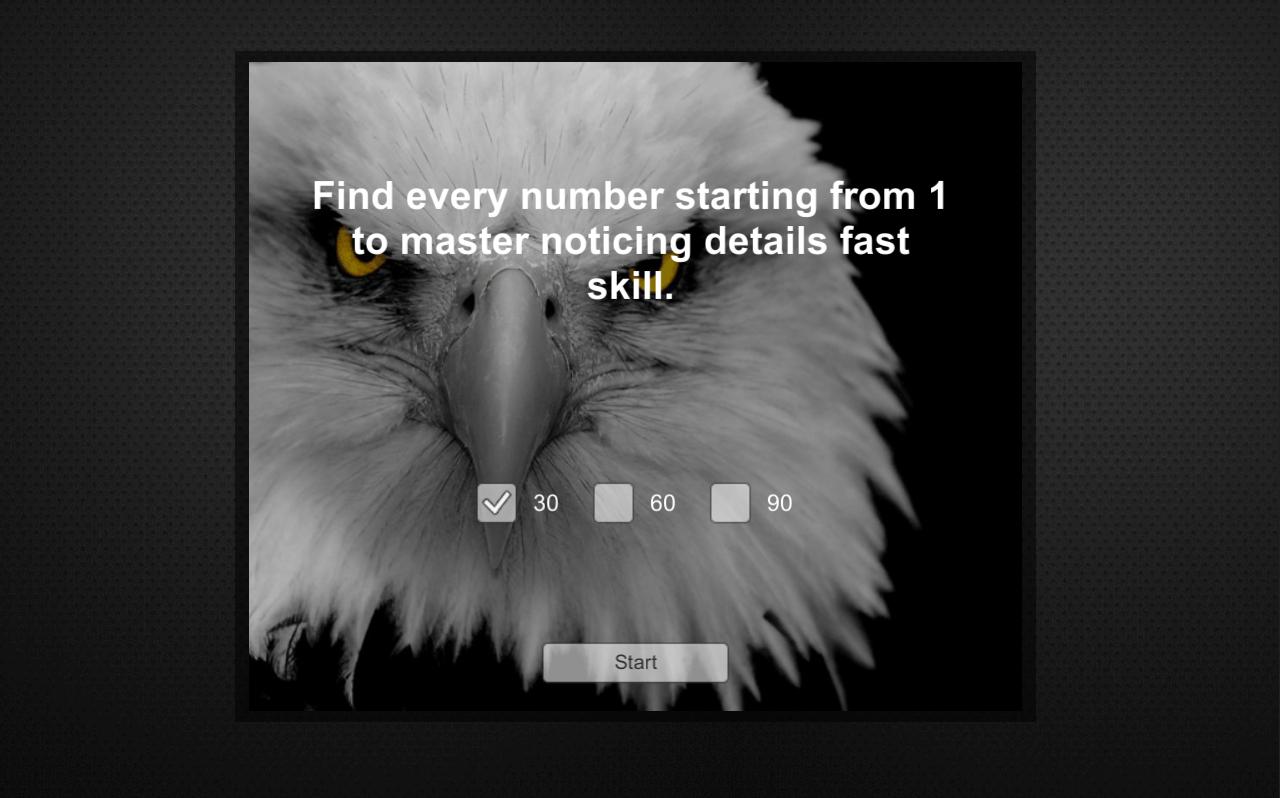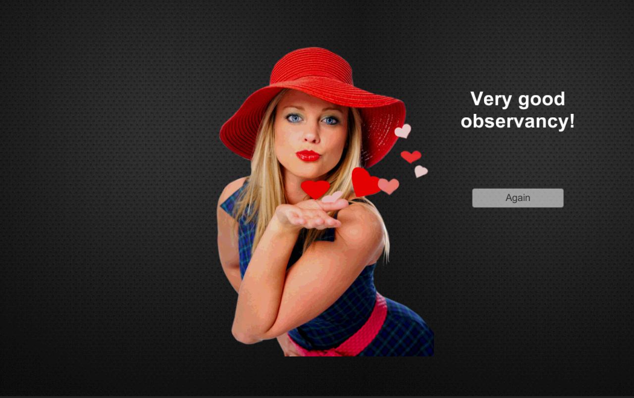 Pruebe esta aplicación entretenida para verificar el nivel de observación y paciencia. Está aquí para entrenar tu cerebro, o simplemente por diversión. Envíenos sus ideas y haremos que el juego sea aún mejor. ¡Gracias!
