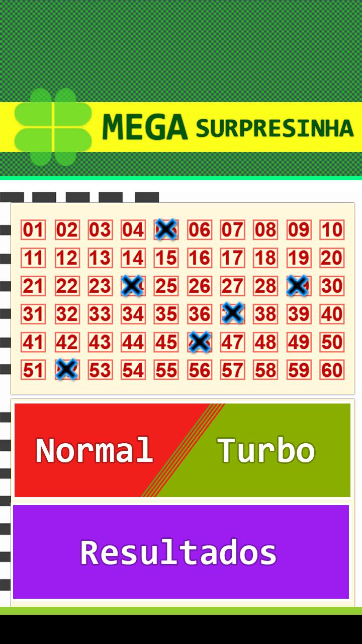 Mega Surpresinha es un generador de secuencia numérica aleatoria, con él fue más fácil elegir sus números al hacer ese pequeño en los juegos de mega sena, ¡y también es posible ver los resultados en la aplicación en sí, ¡buena suerte!