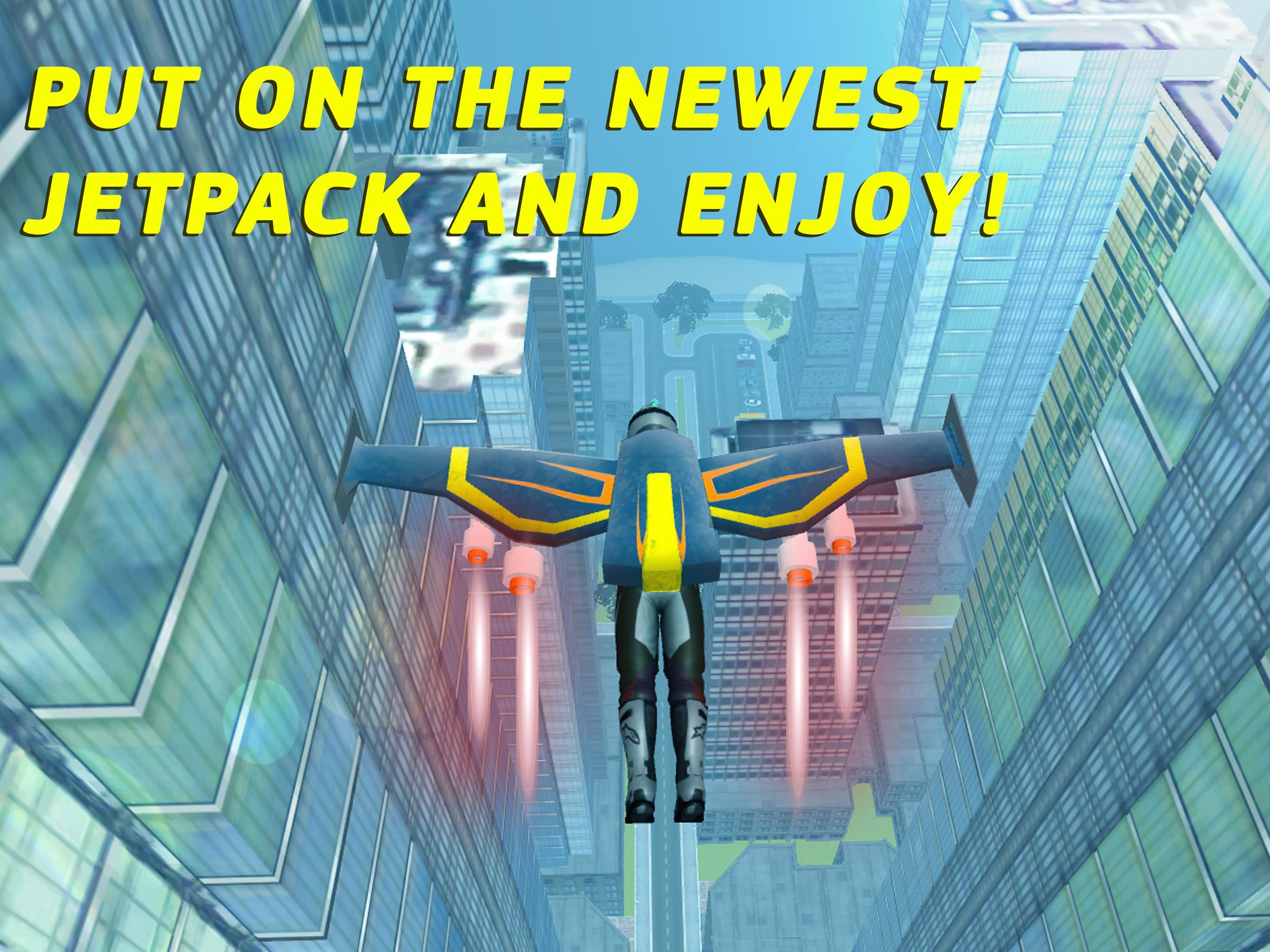 Sea piloto de su propia maravillosa jetpack, vuela sobre las calles de la ciudad, las llanuras y los bosques con