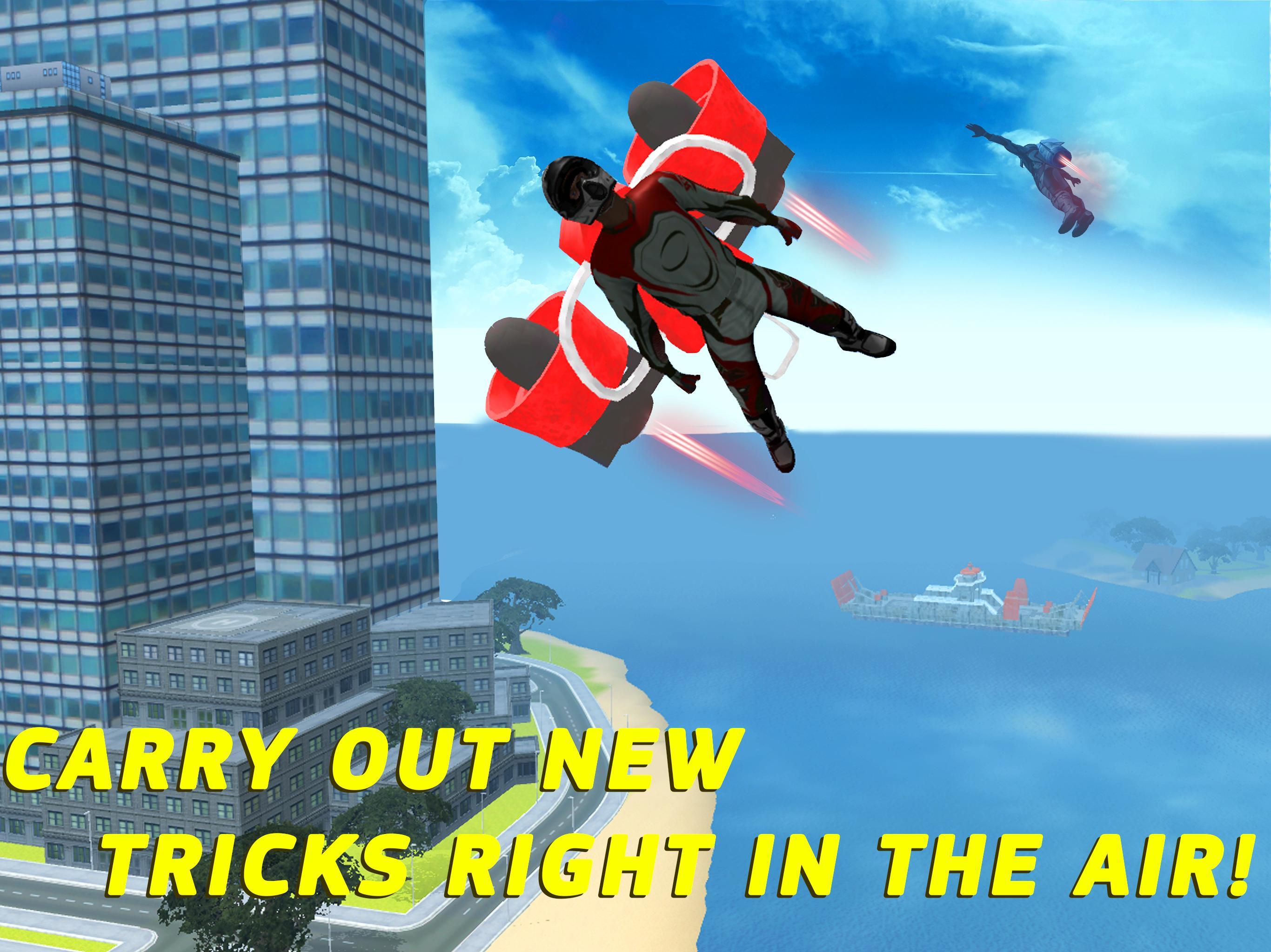 Disfruta de tu jetpack de Super Speed y verifique dos modos de juego: Modo Freeride, donde debes permanecer en el aire todo el tiempo que puedas, y el modo de concurso con la misión de recolectar estrellas y puntos de control. ¡Obtenga el mejor resultado y se encontrará en la parte superior de la lista!
