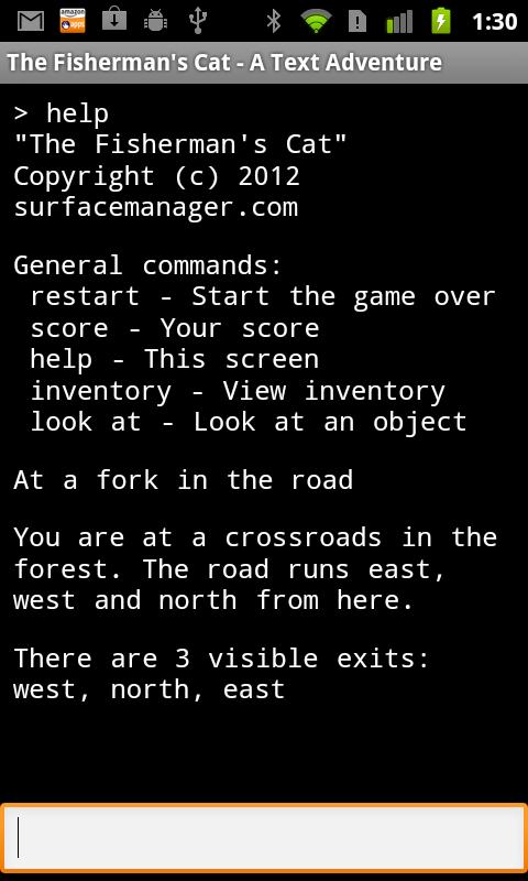 The Fisherman's Cat : una aventura de texto al estilo de colosal cueva y zork (y otros juegos de Infocom y Nivel 9).