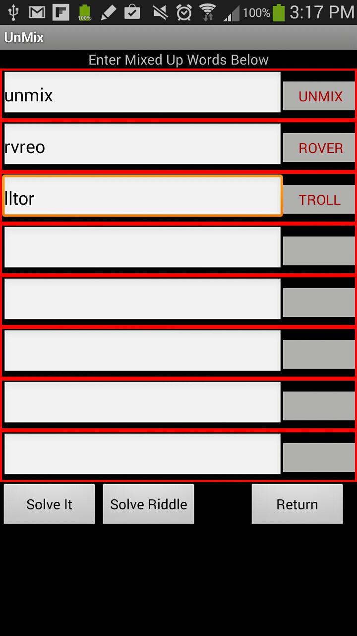 Una aplicación de Android gratuita para resolver letras mixtas en una palabra: UnMix .