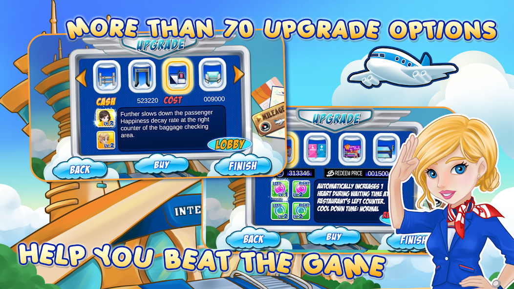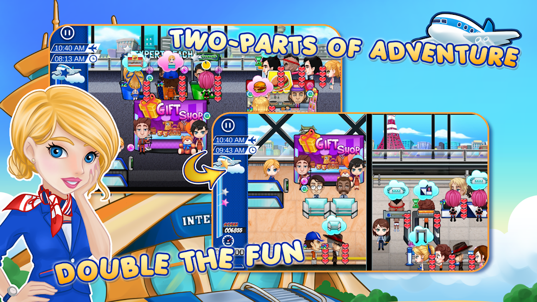 Gérez votre propre aéroport dans un certain nombre de villes célèbres du monde peut être très amusante. Aidez Penny à gérer les aéroports de l'enregistrement à l'embarquement. Son rêve est de visiter tous les aéroports du monde entier. Pouvez-vous aider Penny à réaliser son rêve? Vous devez planifier soigneusement vos passagers afin qu'ils puissent embarquer à l'heure avec confort et facilité.