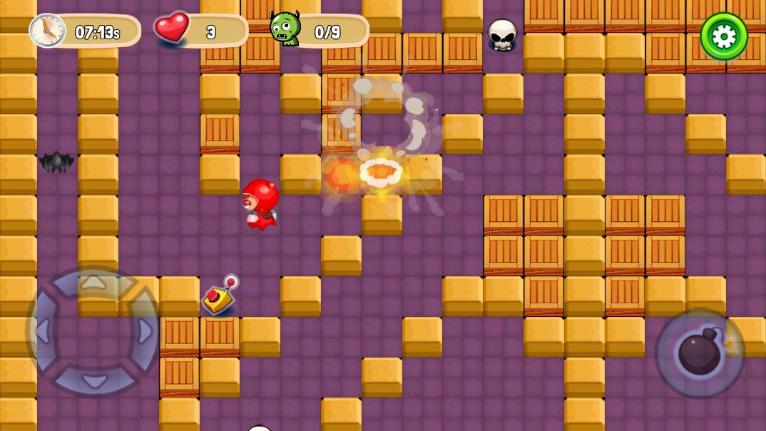 Bomber Reborn - Déplacez-vous à travers les niveaux et placez diverses bombes pour faire sauter vos adversaires. Soyez prudent et ne vous faites pas exploser par les bombes ennemies vous-même! Faites sauter vos amis dans ce jeu Android! Placez vos bombes et attrapez votre adversaire dans un piège explosif. Soyez prudent et essayez de ne pas faire exploser sur vos propres bombes.