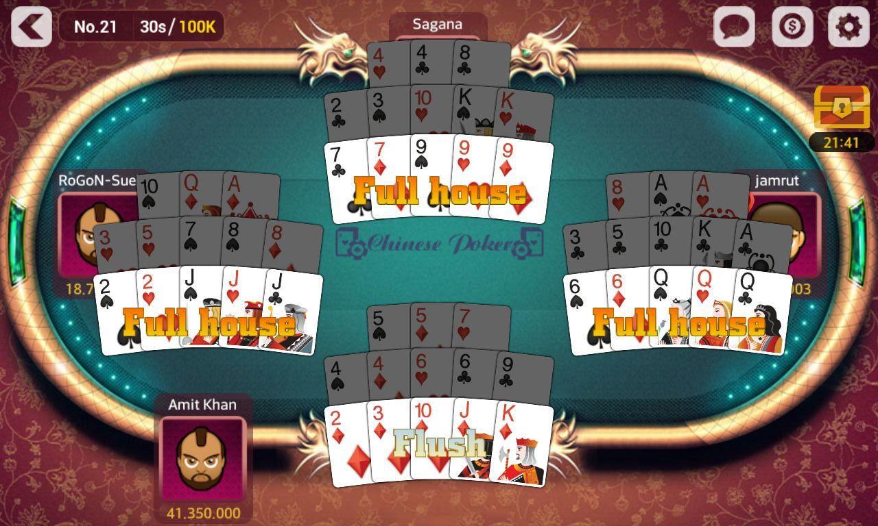 Four Of A Kind offrent un jeu de poker chinois facile à jouer, un jeu de cartes en ligne de conception agréable et plat pour tous les joueurs d'Asie du Sud-Est. Nous organisons également de nombreux événements, promotions et prix chaque jour pour la communauté des joueurs.