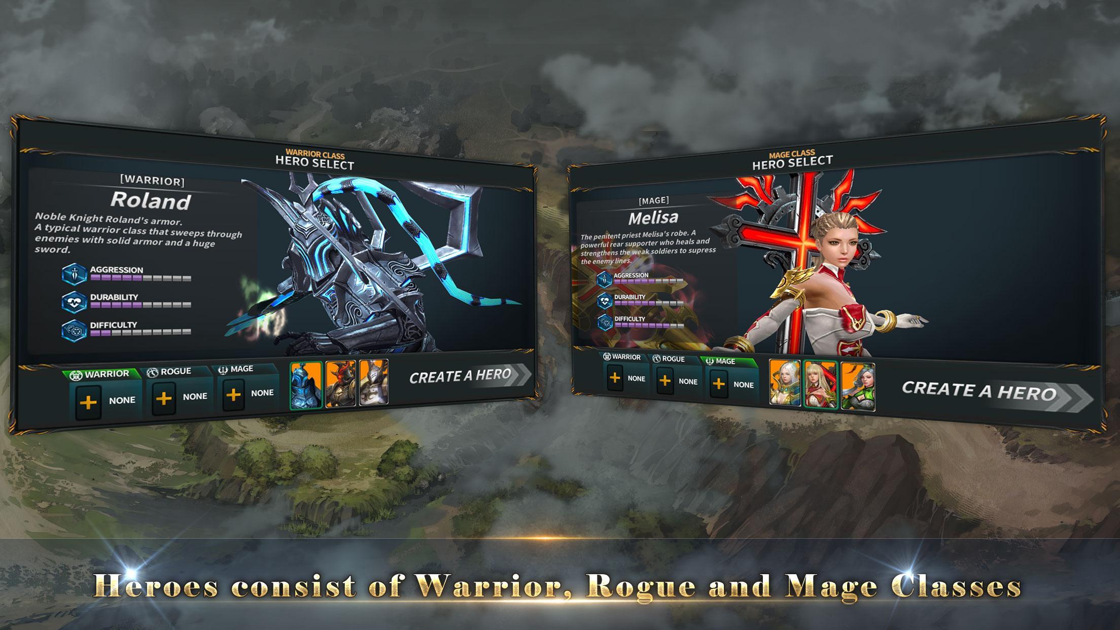 Les héros sont des cours de guerrier, de voyous et de mage.