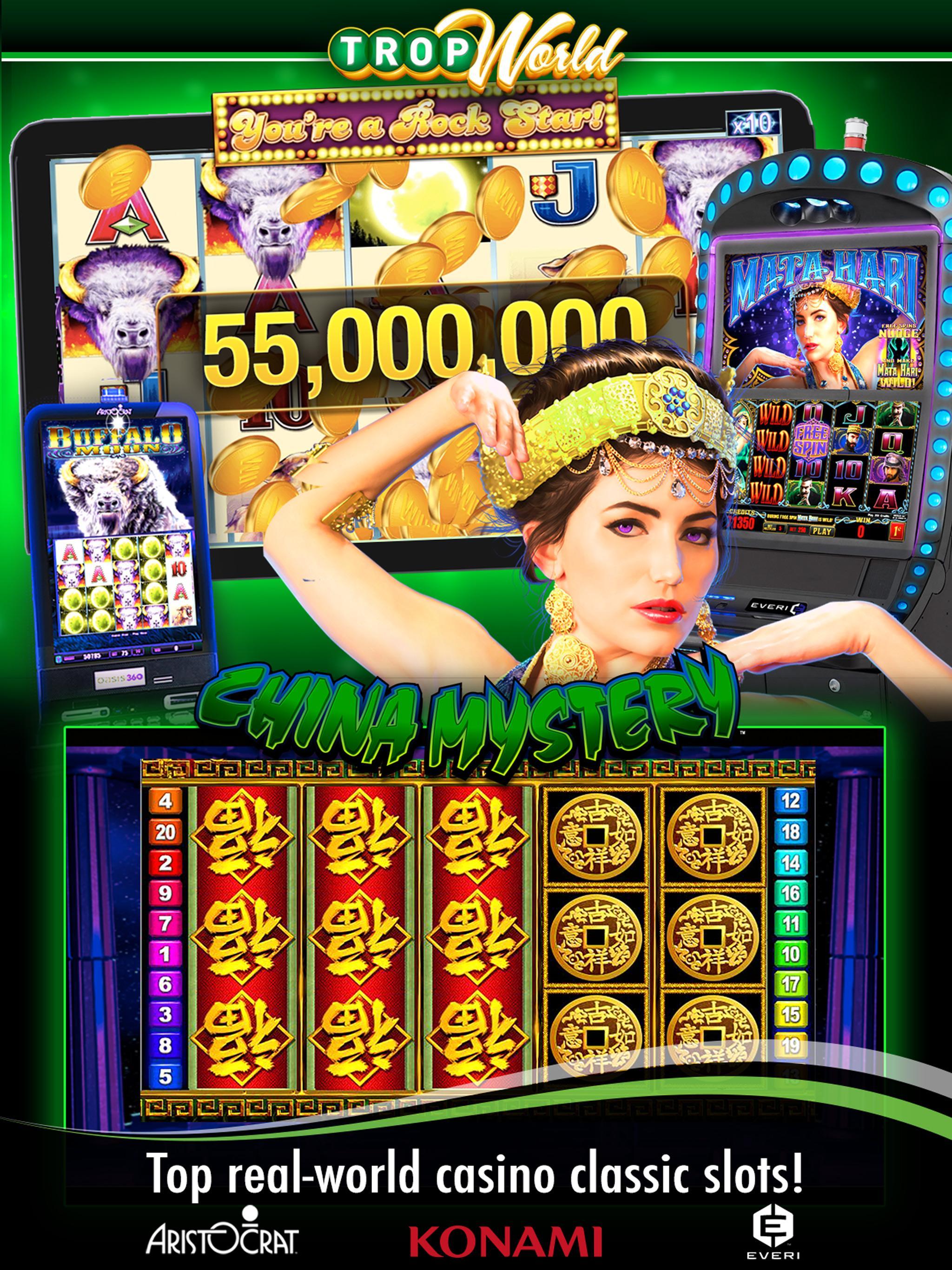 Tournez pour gagner sur vos véritables créneaux de casino préférés pour votre chance à un jackpot progressif! Profitez de plus de 40 titres de slots, y compris des succès de Konami - avec China Shores ™, Lotus Land ™ et Gyspy Fire ™! TropWorld propose plus de favoris de casino, notamment le blackjack, le bingo, le poker, le keno et les machines à sous!