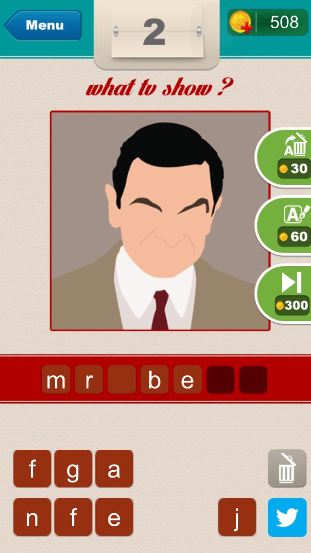 Quelle est l'émission télévisée que vous devez trouver? Regardez l'image, découvrez ce qu'ils sont et écrivez-les. Si vous avez besoin d'aide, révélez des lettres ou supprimez des lettres. Trouvez-les tous et gagnez!