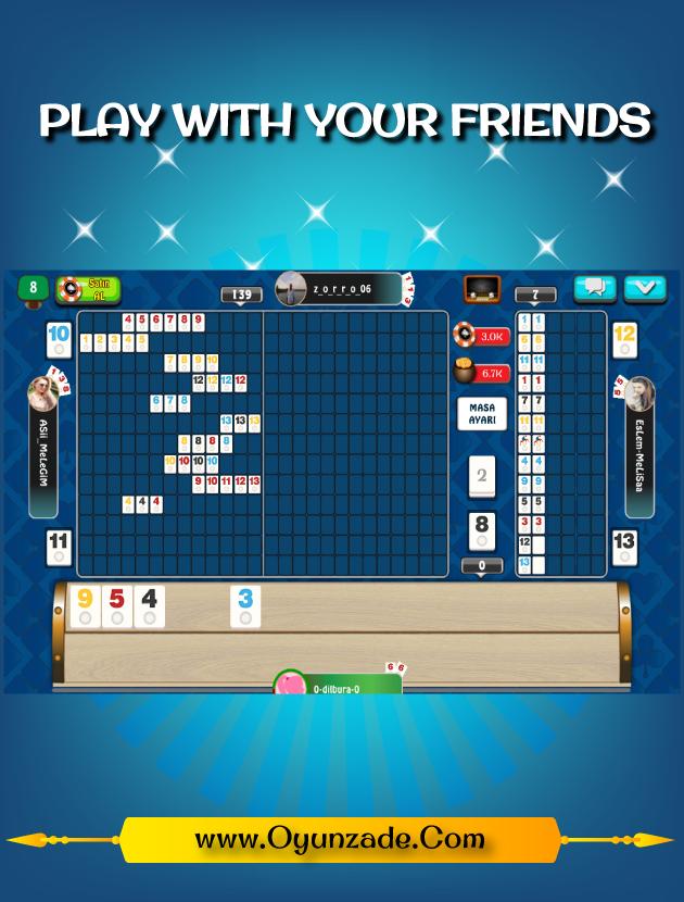 You can join either with your facebook account or your oyunzade.com account. You can widen your social network while playing our game. You can choose which saloon to play the game. You can choose to open table option and invite your friends to the table. You can have private chat with your friends.
