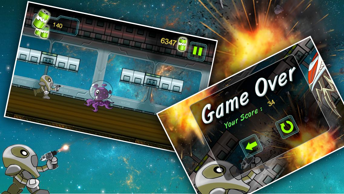 The game presents a first shooter style war scenario where you run on the deck the space warship and eliminate all the aliens. The robots under your command are battlefield ready fighters and fully equipped with rapid firing guns that can handle all kinds of enemy forces.