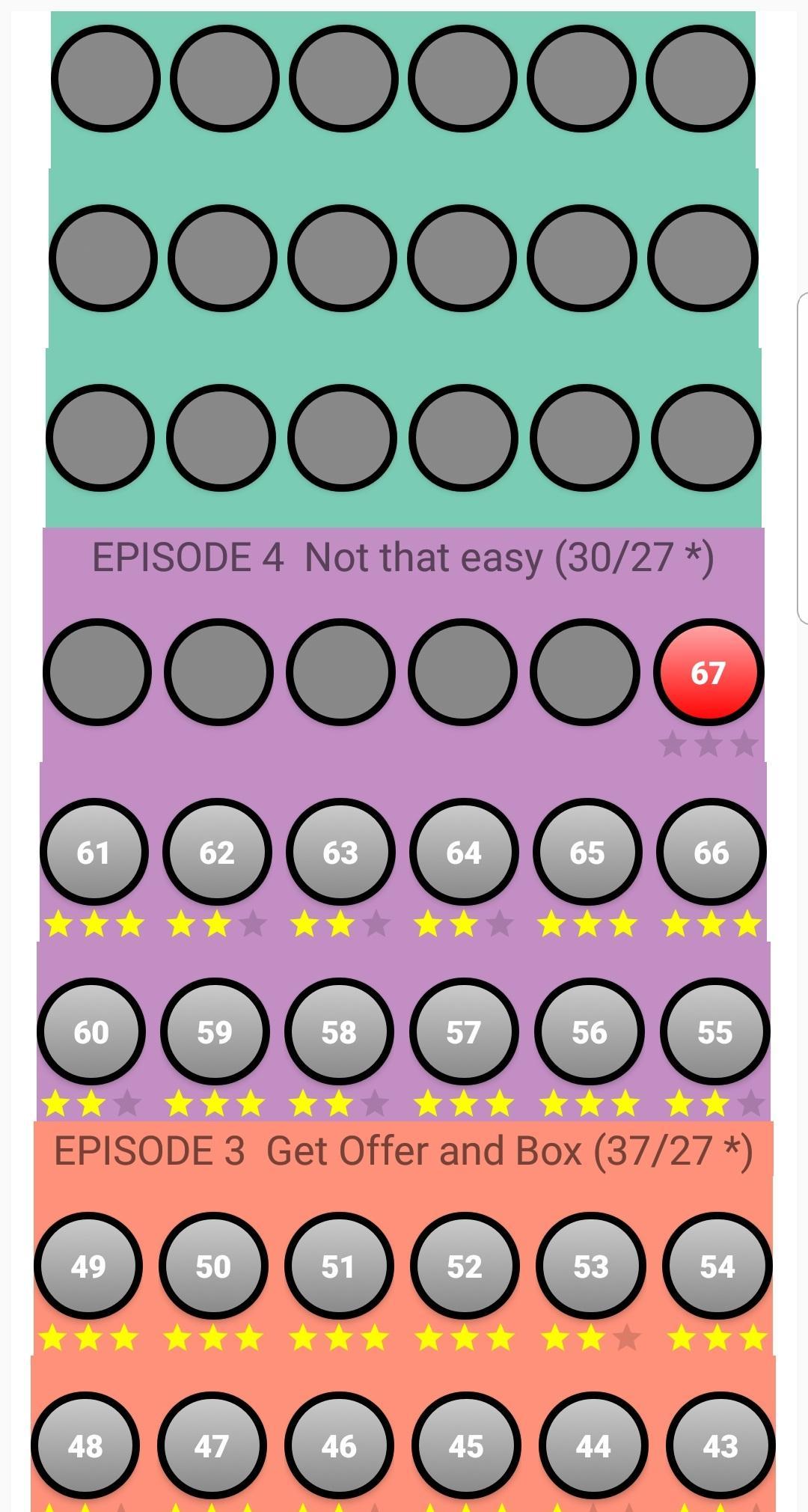Each Episode is designed in a way that difficulty increases gradually and you may find it easy to pass levels at the beginning but later on you must master the game in order to pass harder levels. If you get stacked to a hard level don't worry, you can always exchange reward coins in order to pass that level.