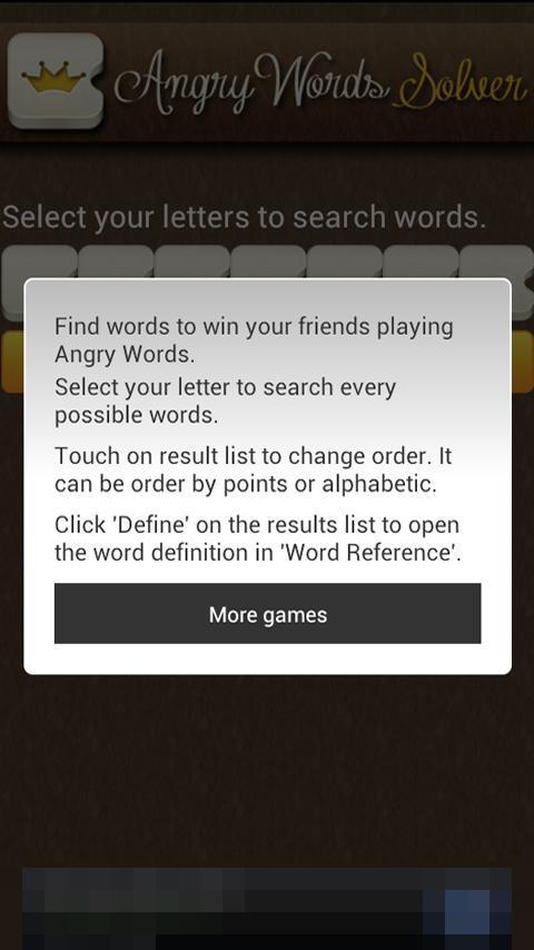 Find words to win your friends playing "Angry Words" (Apalabrados).