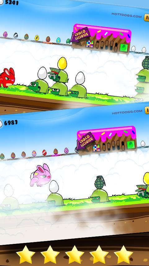 In this endless 2D running game, you will hop and jump your way through the battlefield, avoiding being tormented by the angry Tortoises who will stop at nothing and prevent you from achieving your mission. Collect the eggs to gain valuable coins and choose a Hare that's faster and even has a weapon to help fight back.
