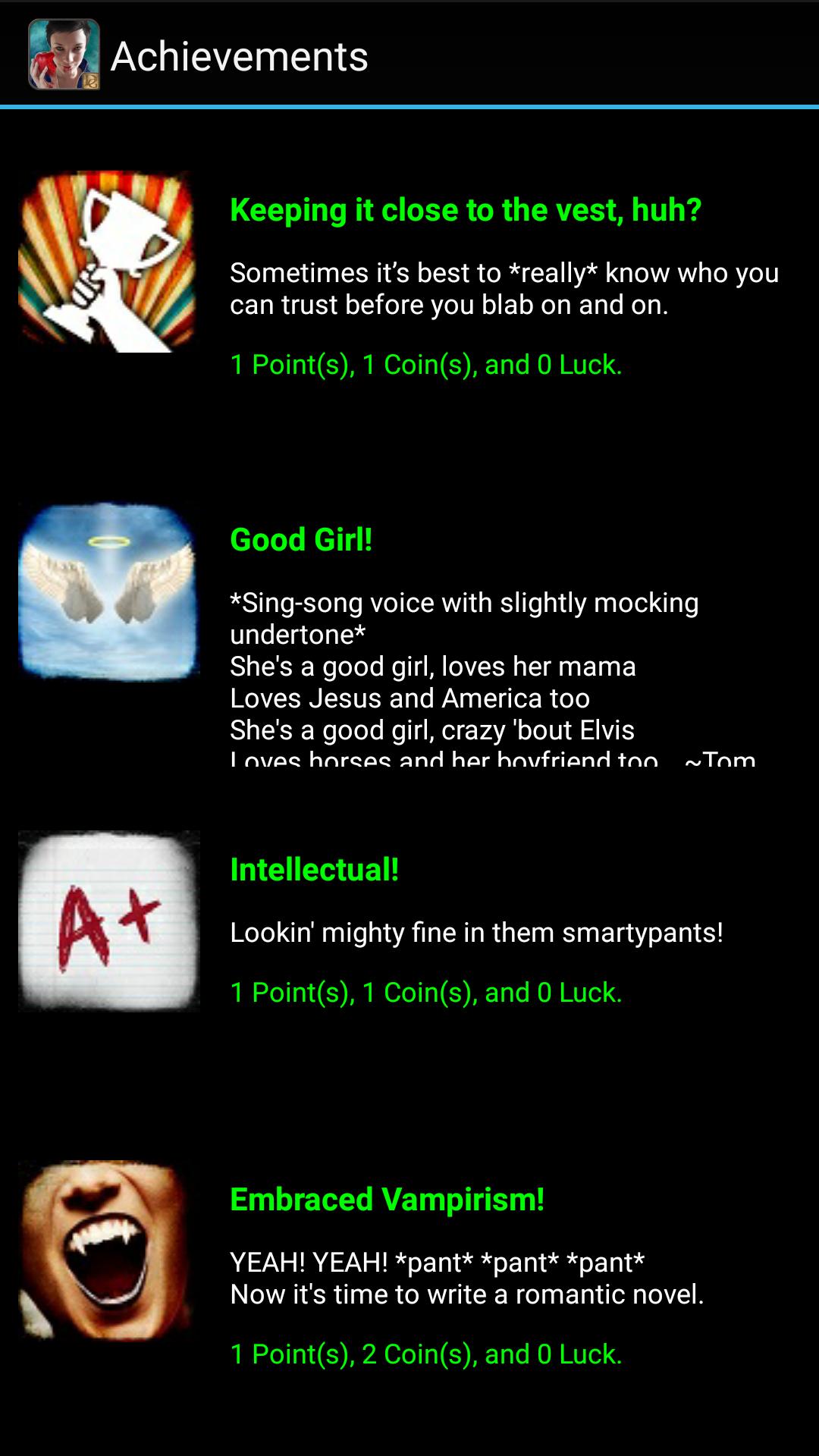 YOU make the choices for Snow White in a text adventure set in modern times. Romance, comedy, vampires, death, and high school drama!