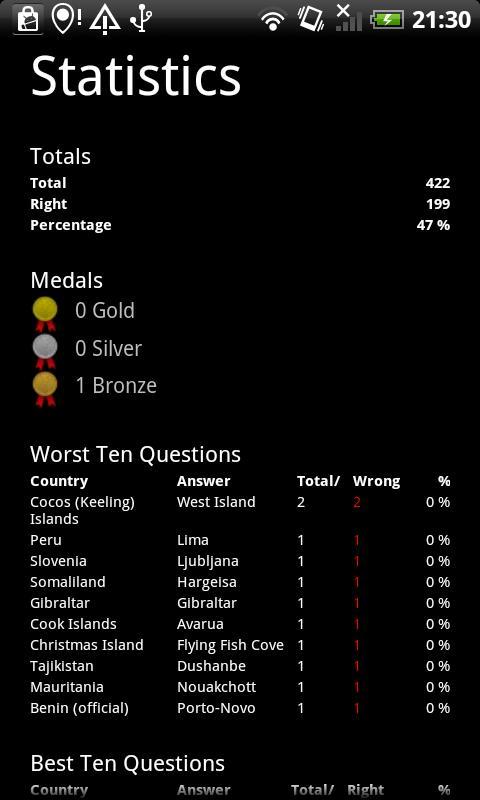* Learning mode - train yourself by focusing on the capitals you're not so good at