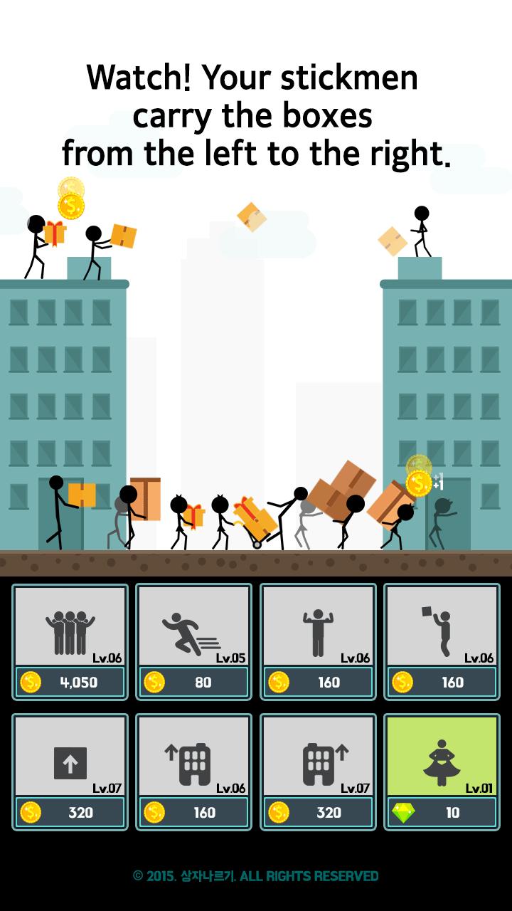 Watch! Your stickmen can automatically carry the boxes from the left to the right.