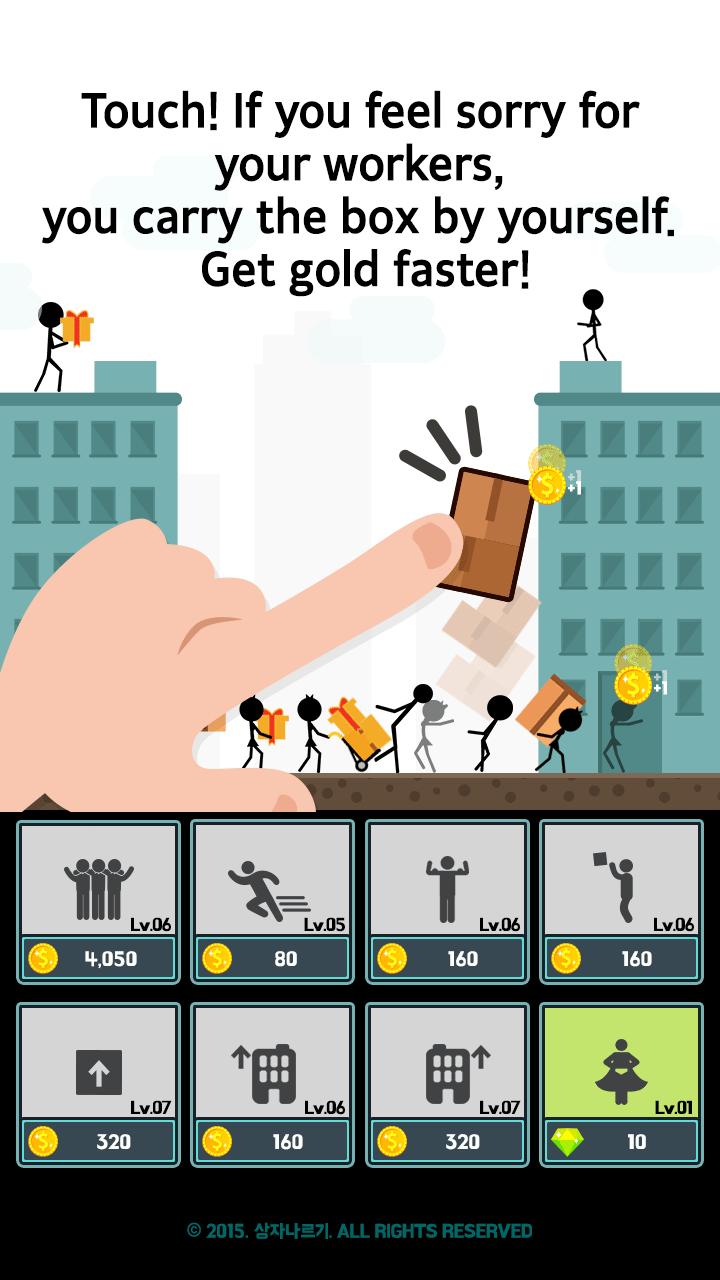 Touch! If you feel sorry for your workers, you carry the box by yourself. Get gold faster!
