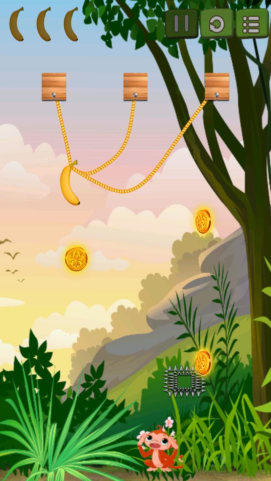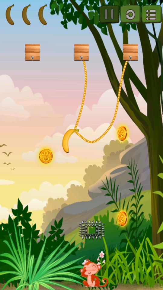 In initial stages collecting coins and dropping banana to monkey would be simple, but in later stages banana is tied with 3 to 4 ropes you need to cut ropes in such a fashion that you collect all coins and drop banana exactly in monkeys mouth.