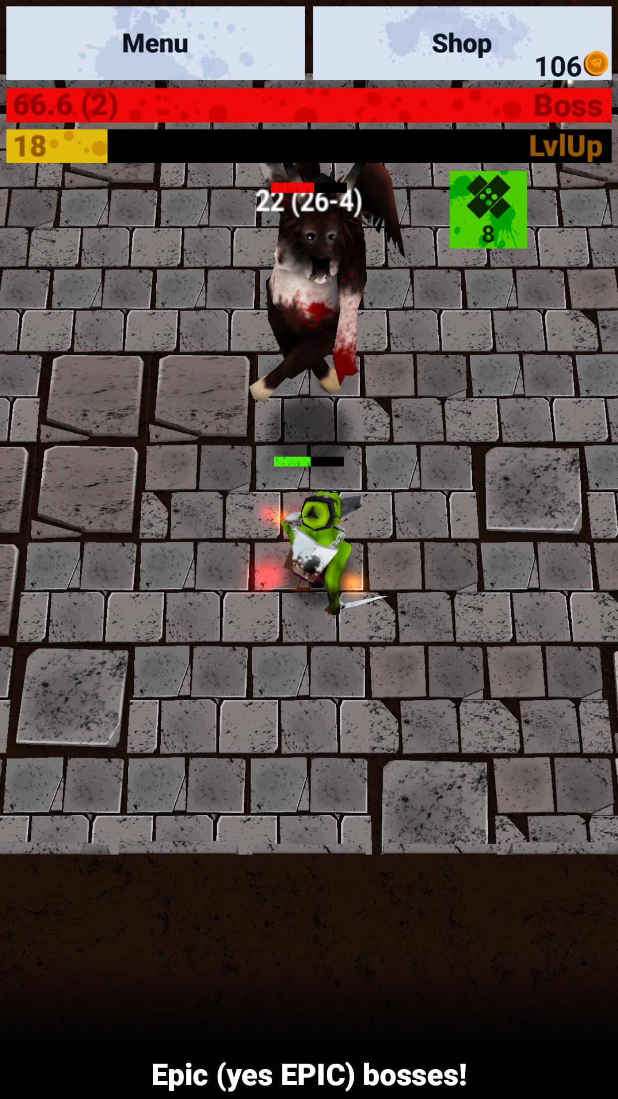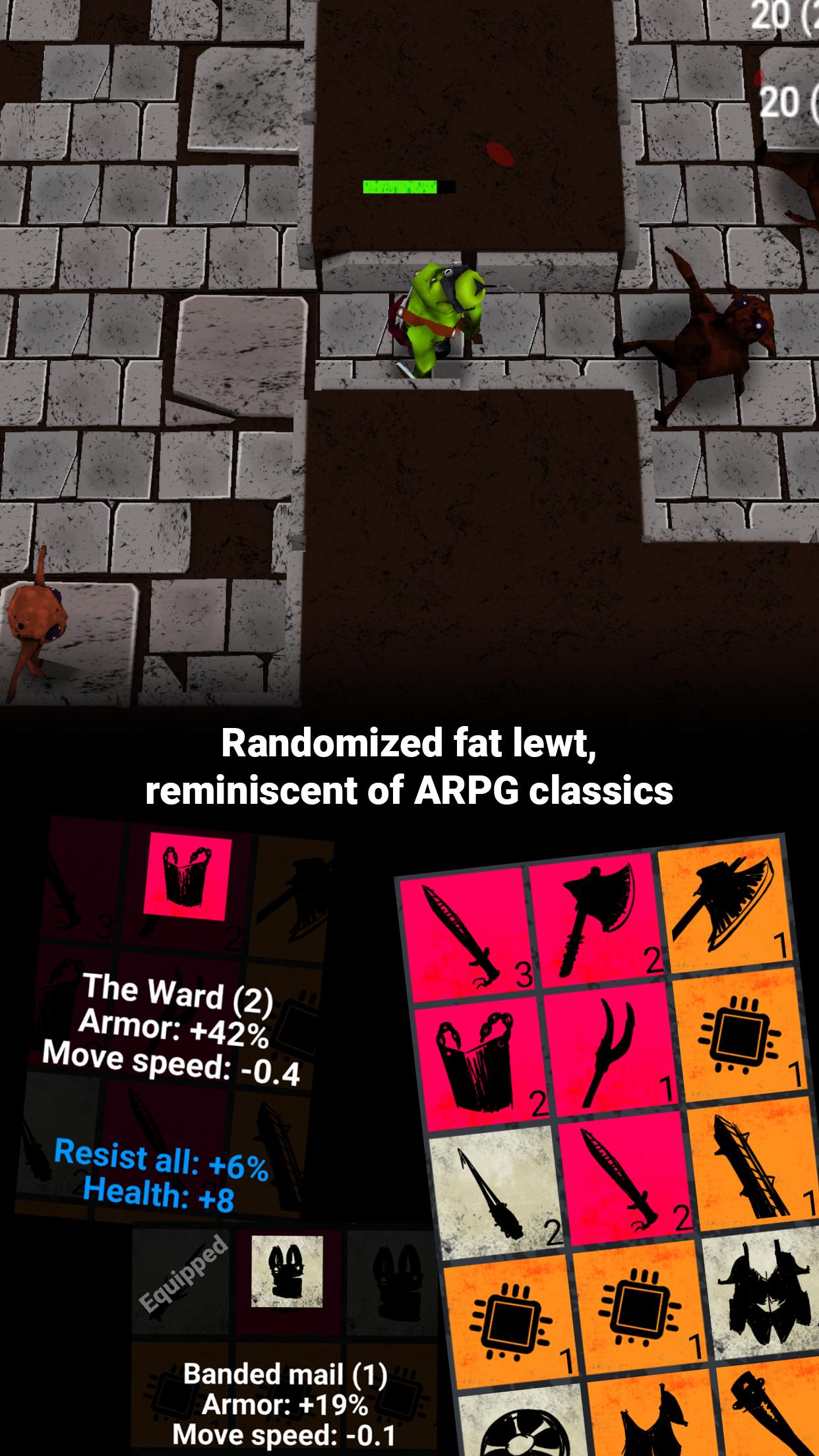- Not a mindless clicker game. You develop your own strategy and deck out your character with items and skills to progress as far as possible.